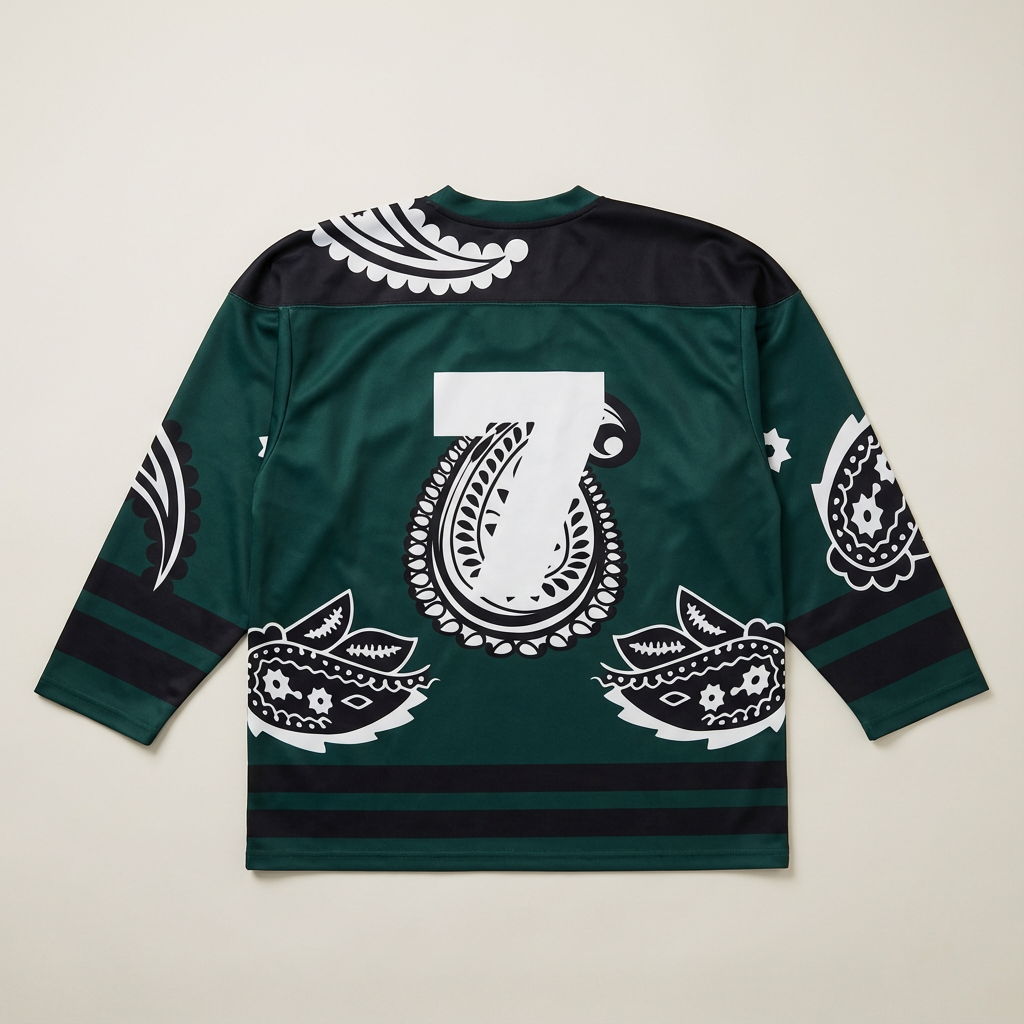 Crafted with premium sublimated fabric, it delivers that authentic game-day look without the weight, making it versatile for everyday wear. Bold graphics, oversized paisley detailing, and the standout “7” motif on the back represent both individuality and team spirit.