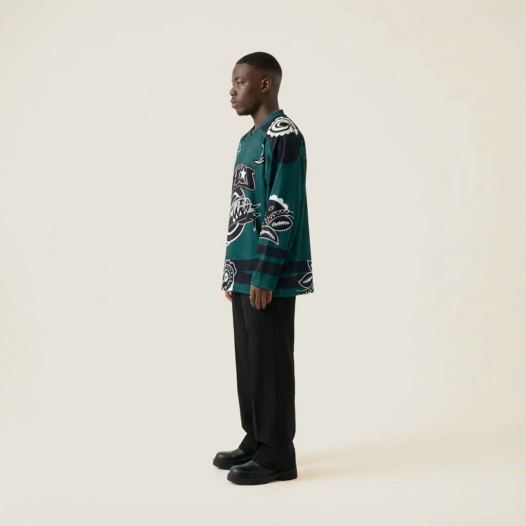 Nostalgia speaks to the early memories of Houston's street/sports culture, where the attire was vibrant, engaging and unique. This Jersey references the 90's-00's essence with the evolution of streetwear, bridging the past with the present in a distinct way.
